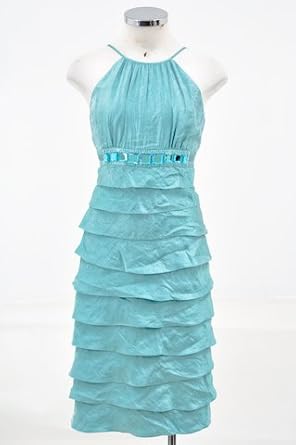 Adrianna Papell Teal Blue High Neck Sleeveless Empire Waist Tiered Dress
